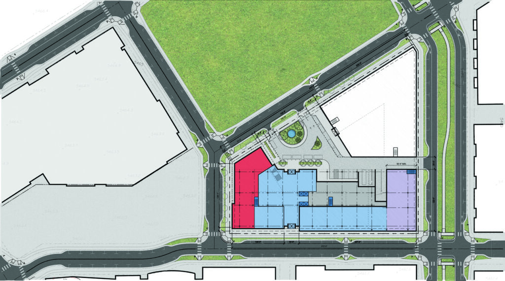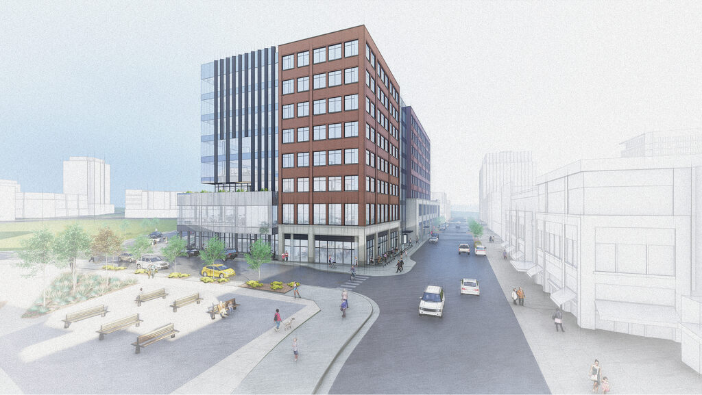 This project, located where the old Westminister Mall once stood, is newly masterplanned as a city center. This project was specifically designed for a life science tenant with ground-floor retail. A hotel and convention center are planned for the adjacent lot along the city center green.
